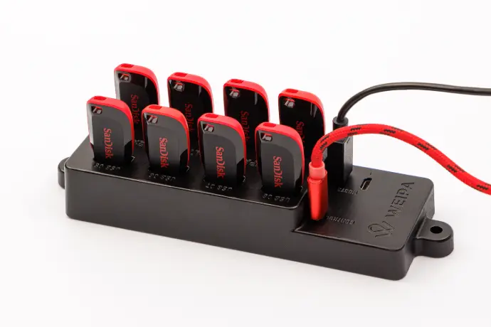 O USB Multiplexer 2x8 permite conectar até 8 dispositivos USB e alternar automaticamente entre eles, sem trocas manuais. Com seleção dinâmica, segurança de dados e construção robusta, ele garante eficiência e confiabilidade para testes e processos repetitivos.